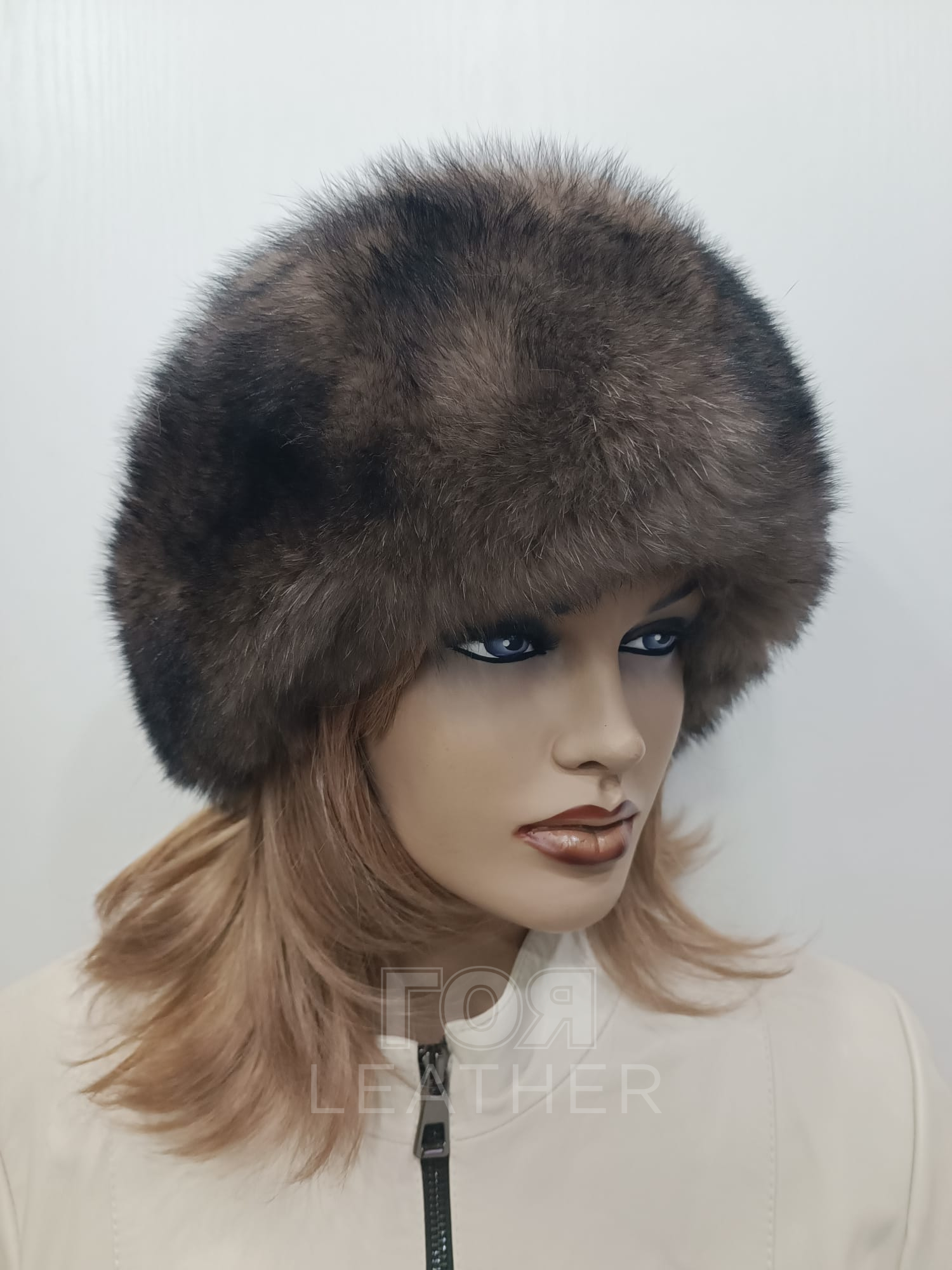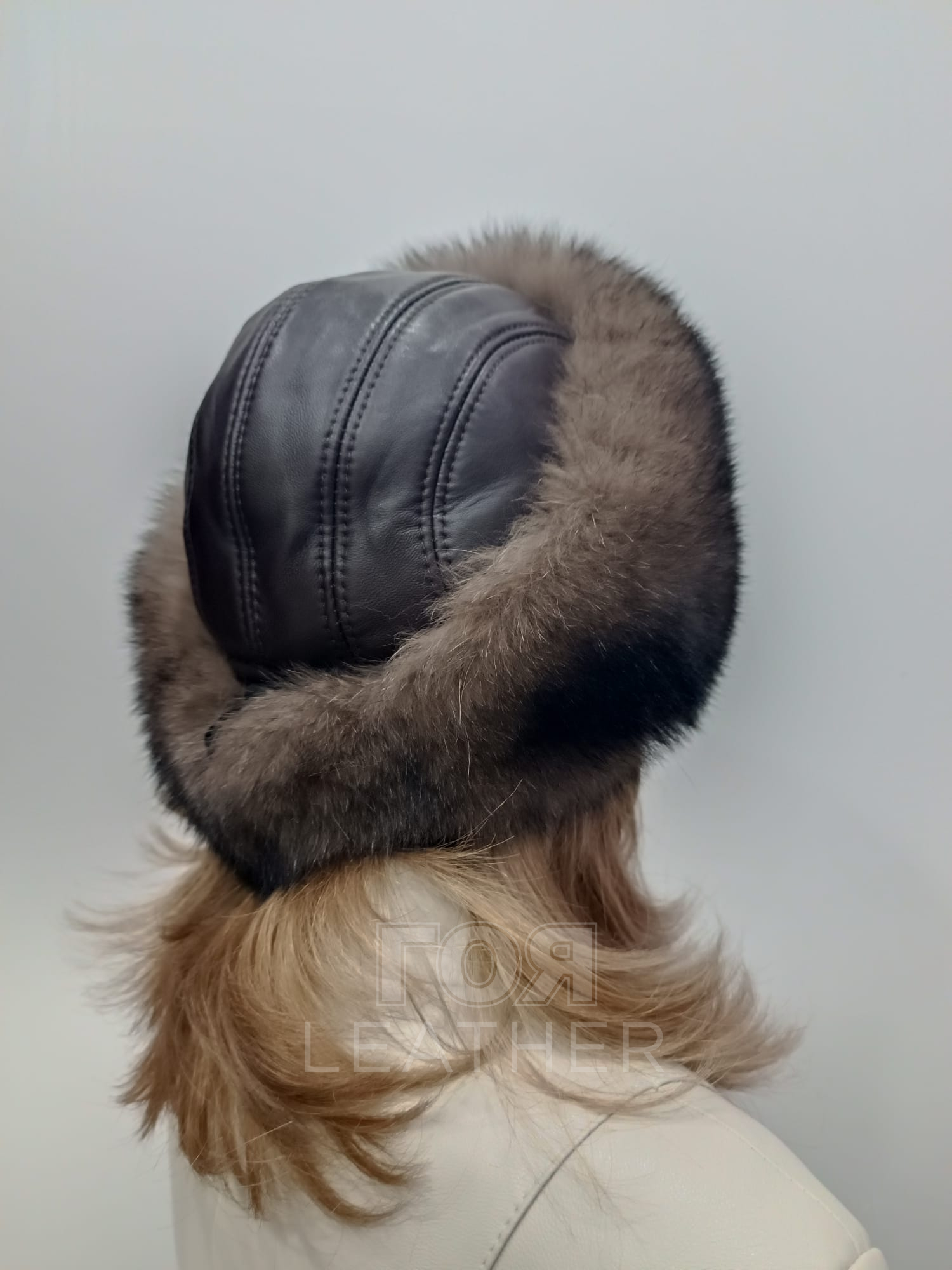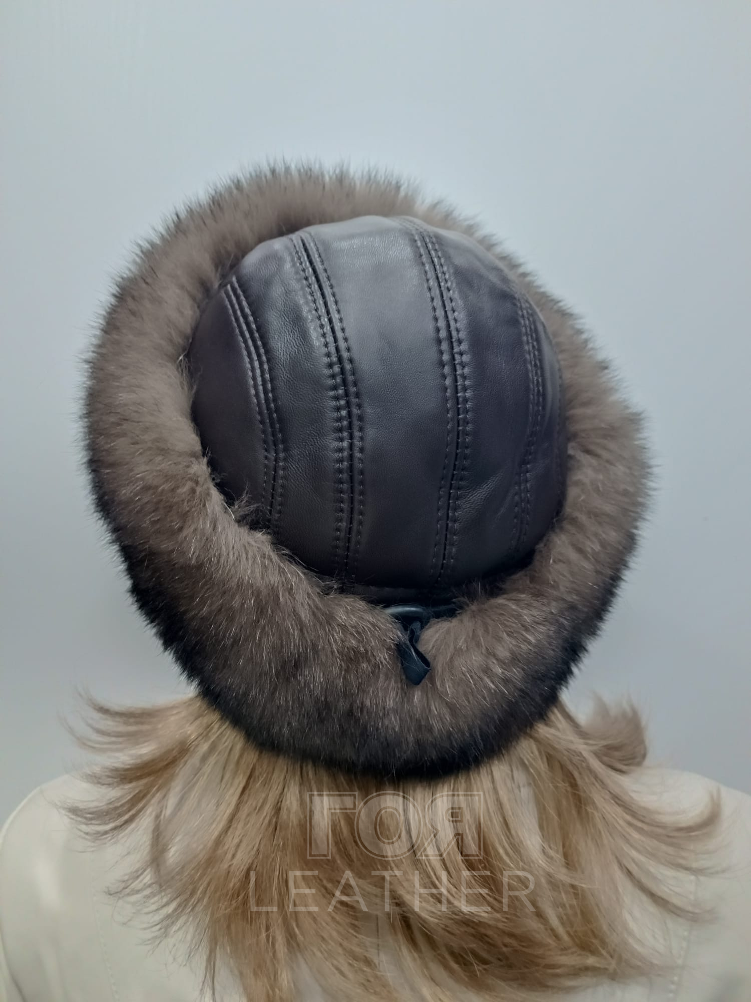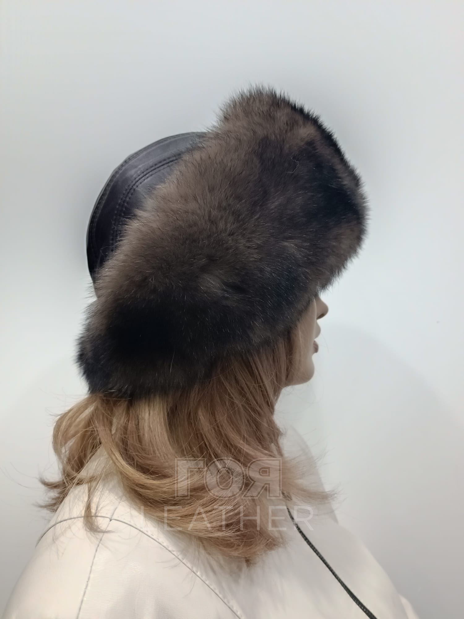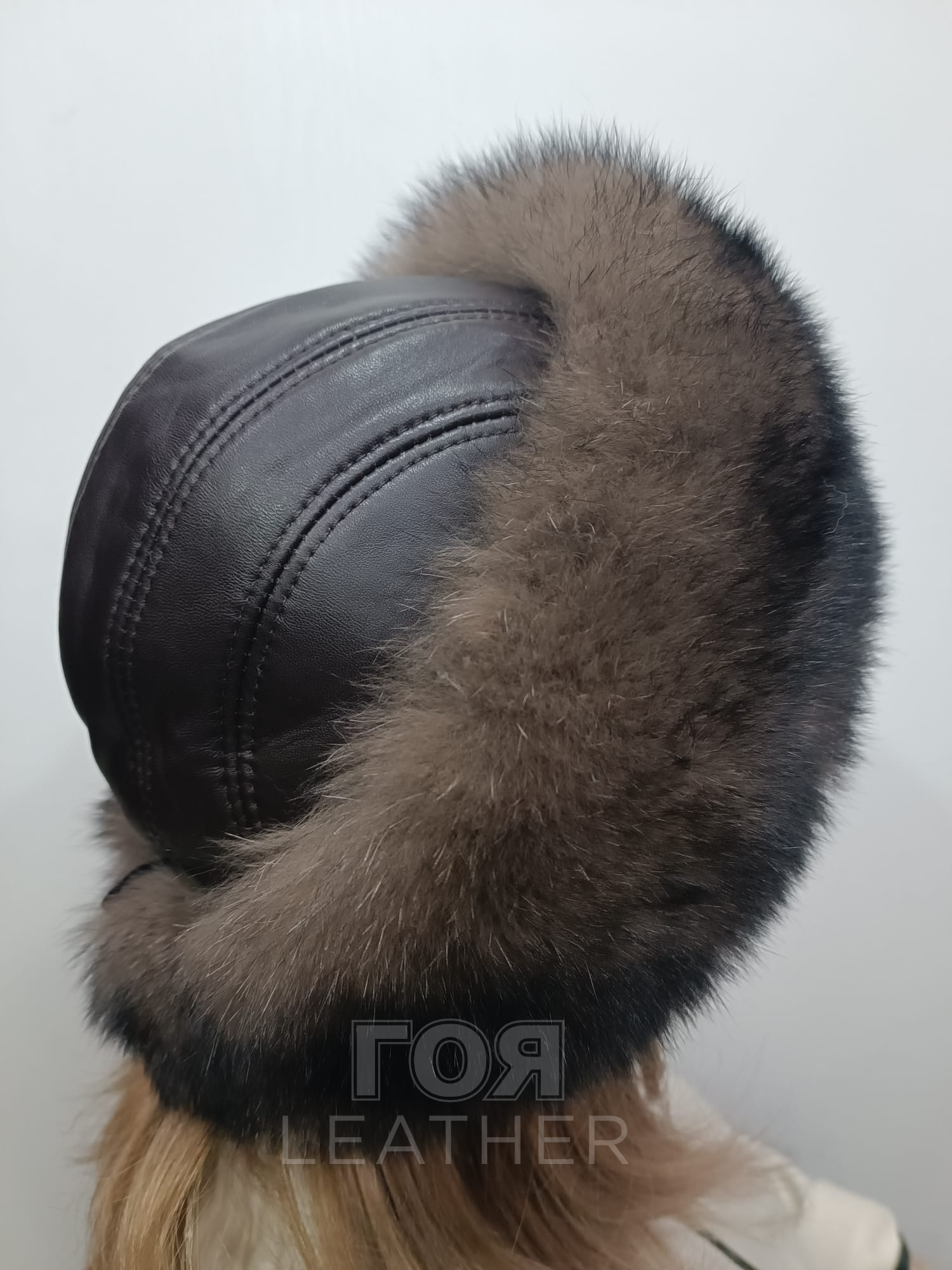 Дамска кафява кожена шапка с лисица SH- 78 | ЦВЯТ: Тъмно кафяв