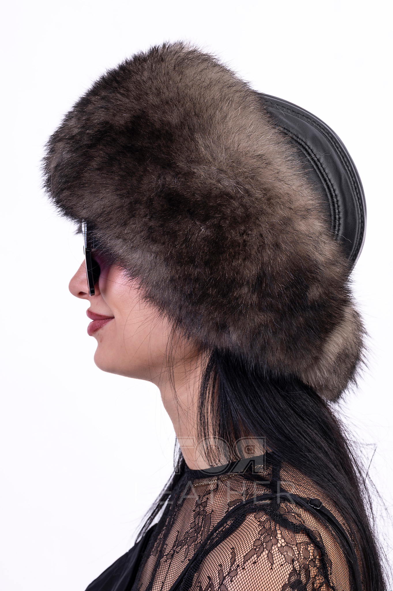 Дамска кожена шапка с лисица