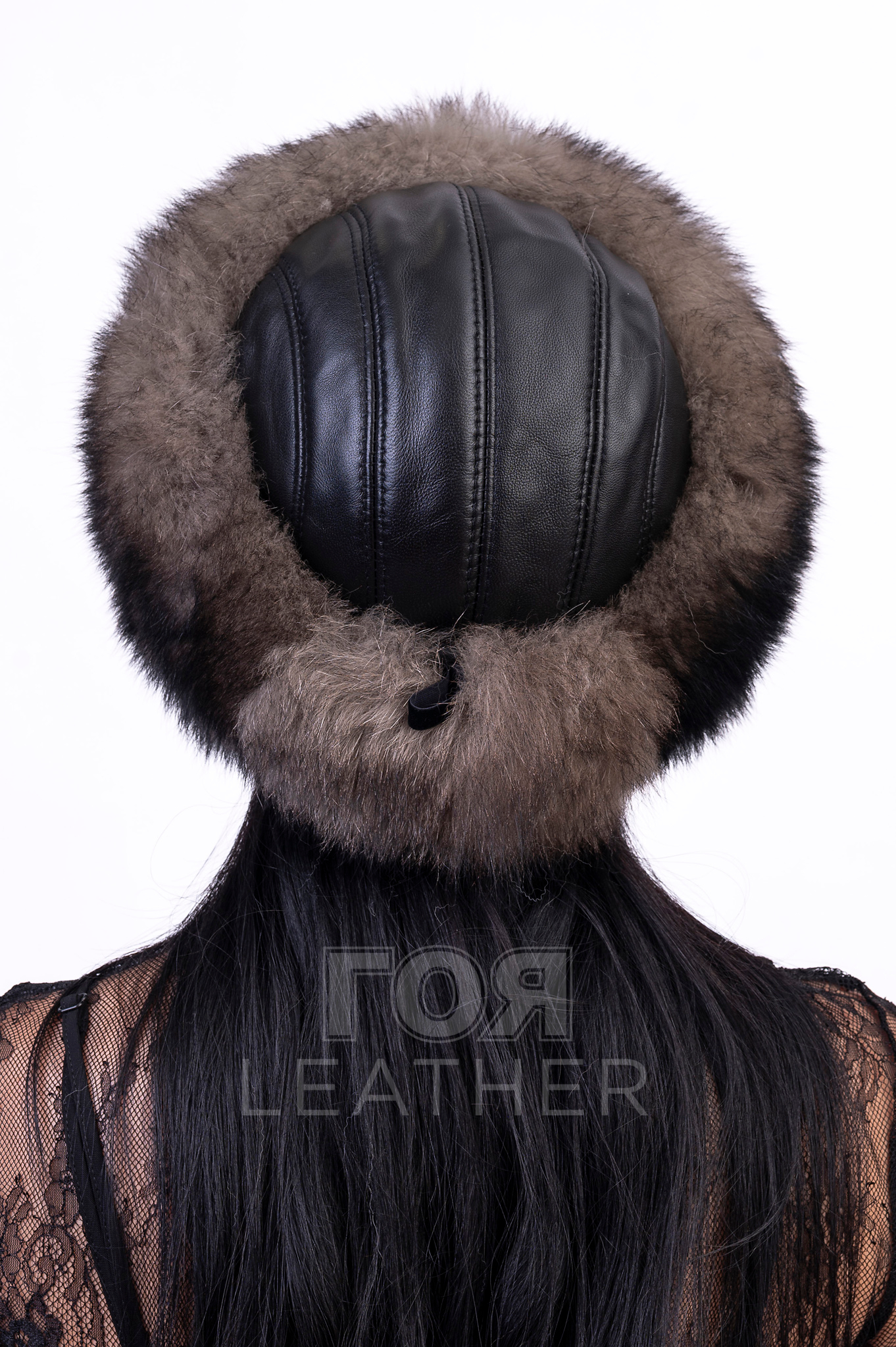 Дамска черна шапка с лисица от ГОЯ Leather. Луксозна дамска шапка изработена в комбинация от агнешка напа и лисица. Вътрешна част подплатена с леко ватиран хастар. Универсален размер, с възможност за пристягане в задната част. Цвят на лицевата кожа- черен. Цвят на лисицата- собол (максимално близък до оригиналния цвят на Собола).