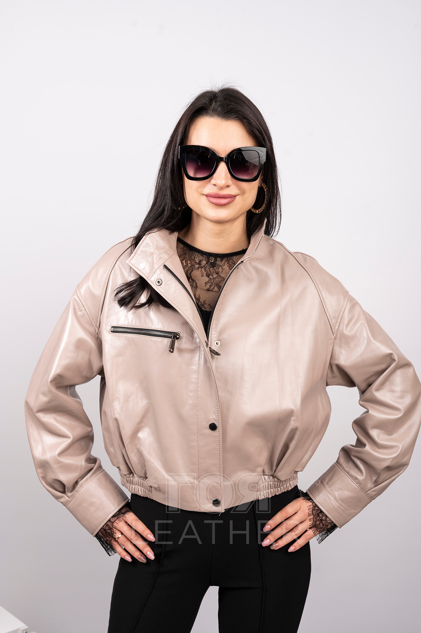 Представяме Ви нов модел яке в стил бомбер. Изработен от висококачеатвена агнешка напа. Моделът се отличава с изчистена визия. А кцент е високата яка и широките маншети. Якето е двойно закопчаване- цип и платка с капси.