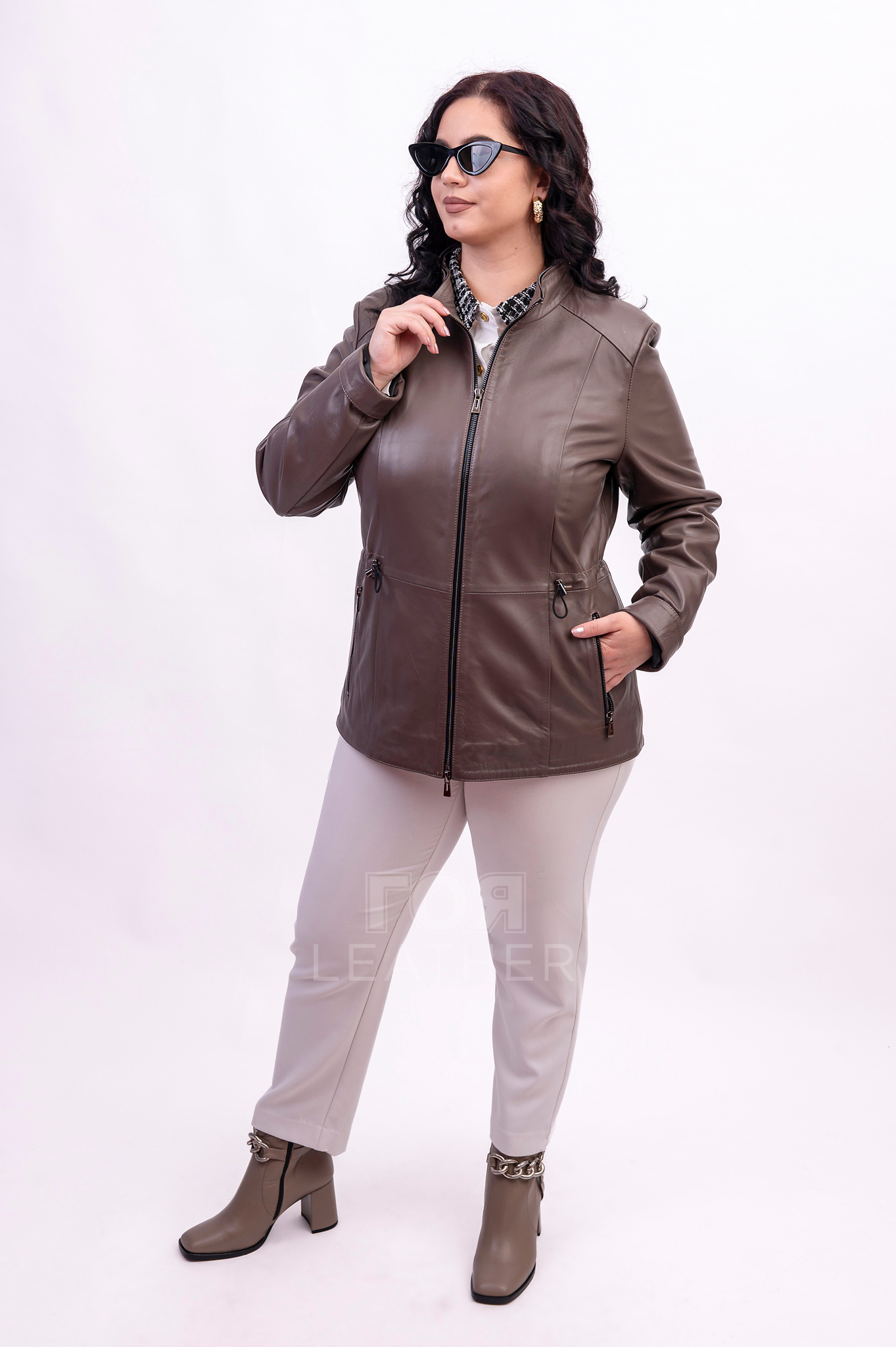 Модерният  цвят Тауп на якето лесно се комбинира с различни елементи от облеклото, било то дънки, пола или рокля. Дължината на продукта (65-67 см) осигурява добра защита от вятъра и свобода на движение. Естествената агнешка кожа осигурява приятно усещане и гарантира издръжливост. Специална характеристика на модела е подвижната качулката, която може надеждно да ви предпази от вятъра.