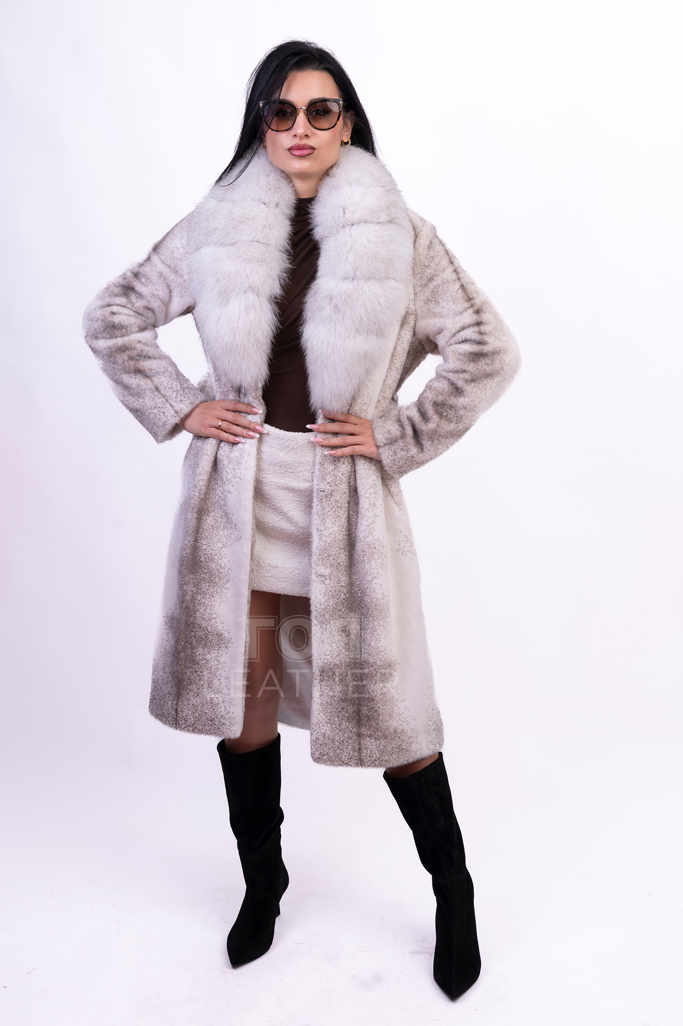Дамско палто от алкантара с лисица е елегантна и впечатляваща дреха, изработена от стилна смес от  вълна и  кашмир. Луксозната му яка от лисича кожа служи като фокусен елемент, създавайки луксозен, изтънчен вид. Яката е подвижна, което ви позволява да трансформирате дрехата по ваше желание - носете я по-семпло или с пухкава козина за допълнителна елегантност и обем. Нежният меланжиран нюанс се съчетава красиво както с класически тъмни, така и с ярки цветове , създавайки разнообразни ансамбли.