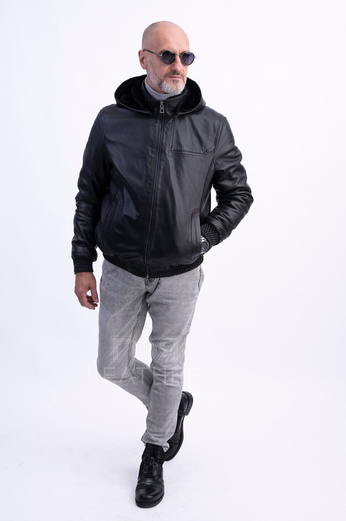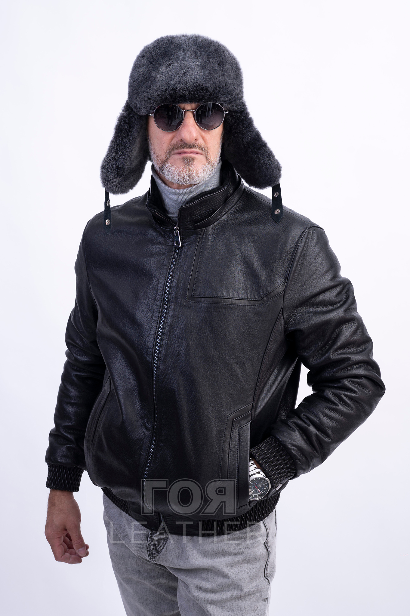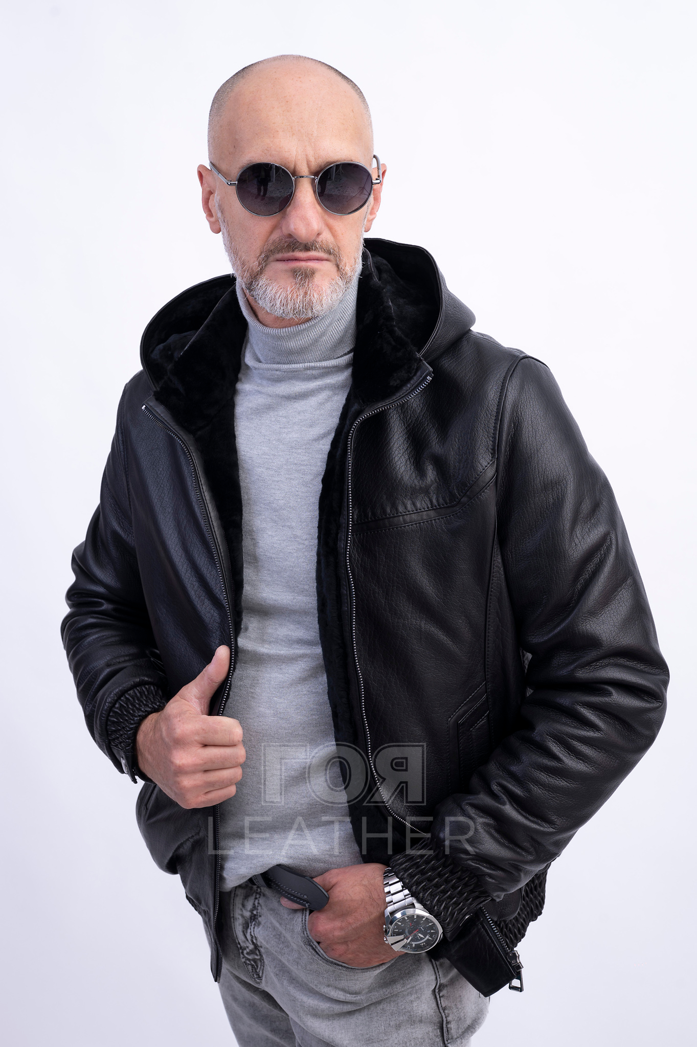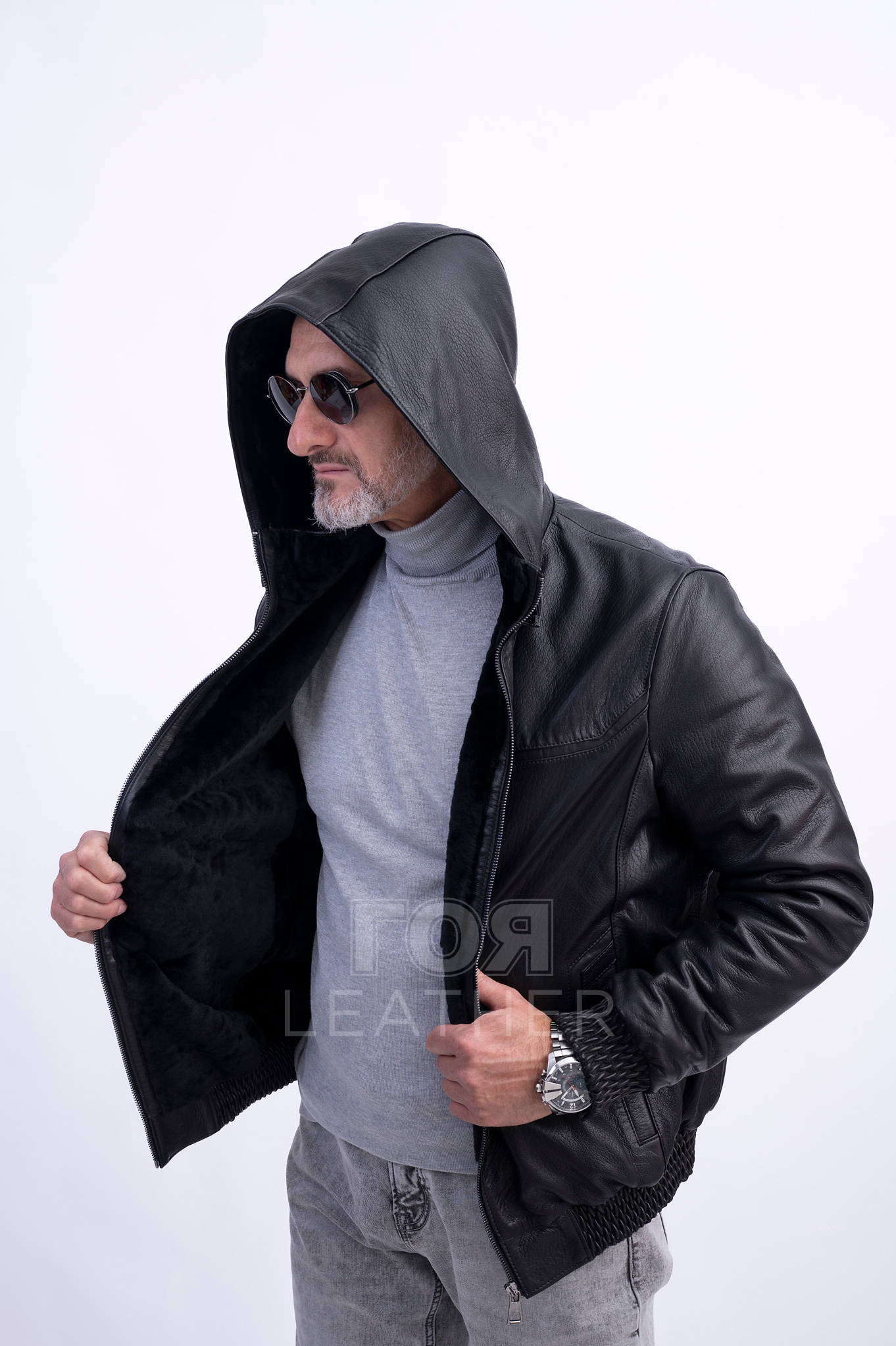 Този модел е изработен от висококачествена естествена кожа в класически черен цвят . Тя е  еластична и издръжлива. Коженото яке е удобно за носене и изобщо не ограничава движенията. Подплатата от овча кожа ви позволява да го носите при сравнително ниски температури. Якето е приятно на допир, много топло и уютно.