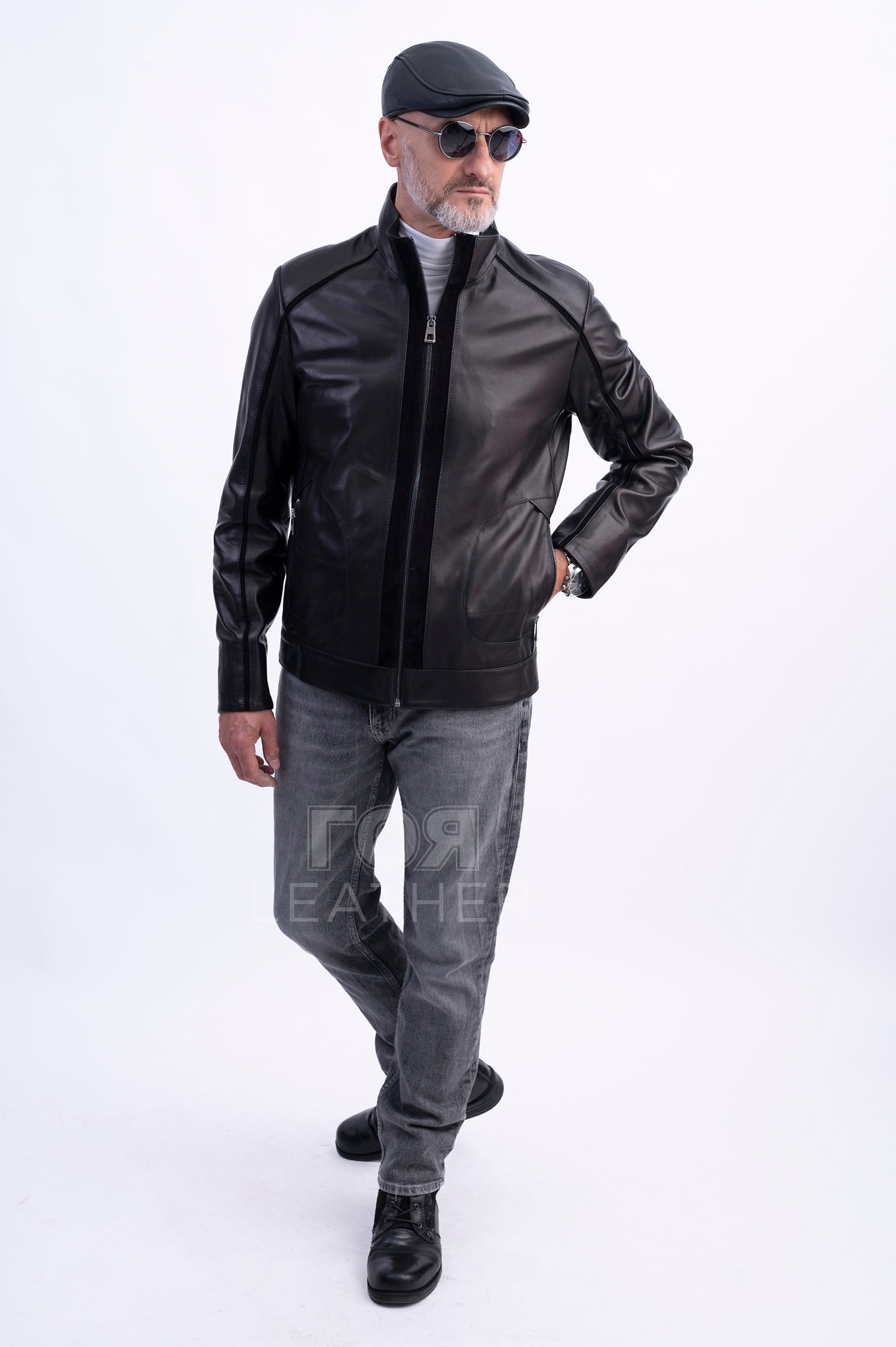 Мъжко комбинирано кожено яке напа и велур
