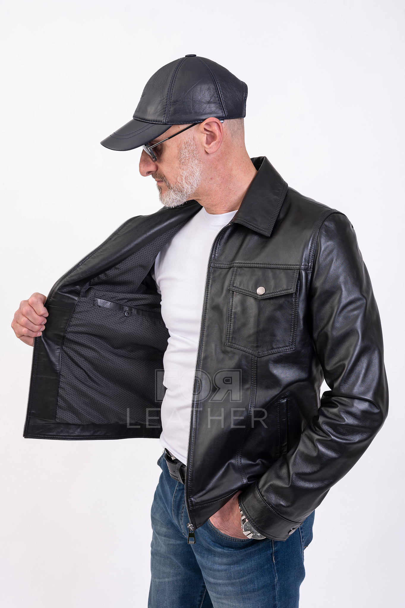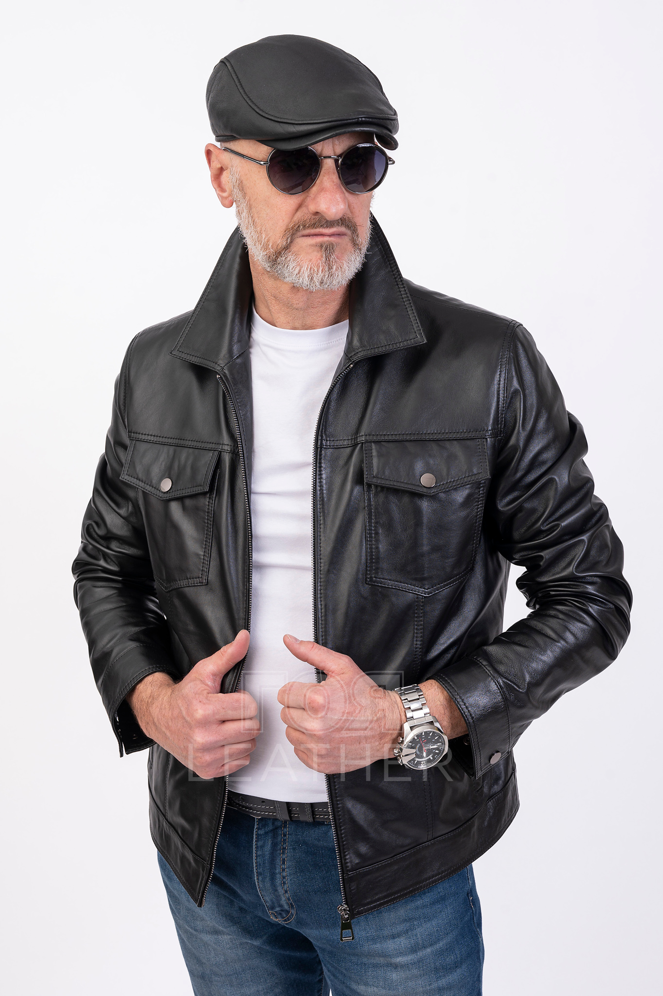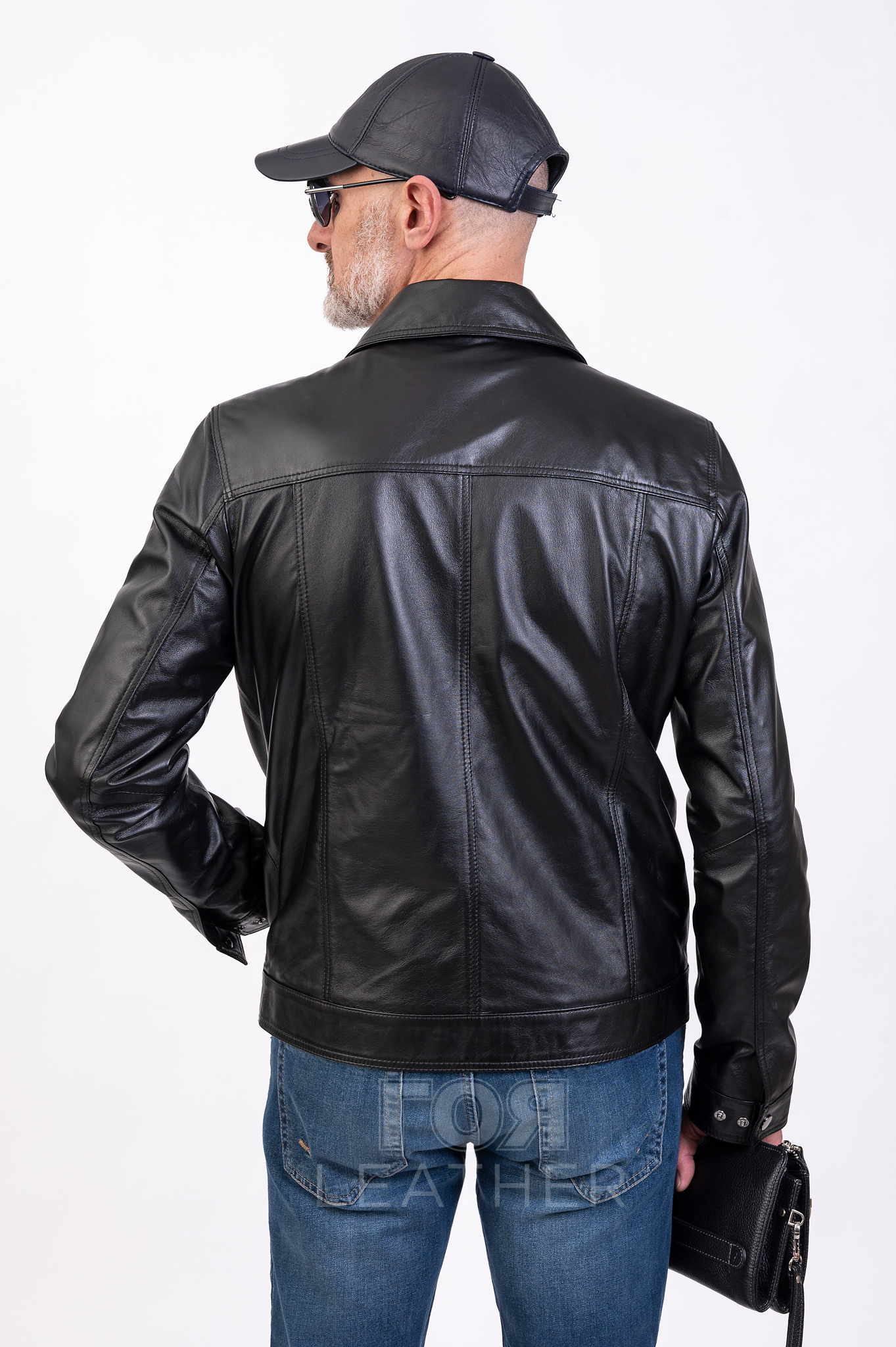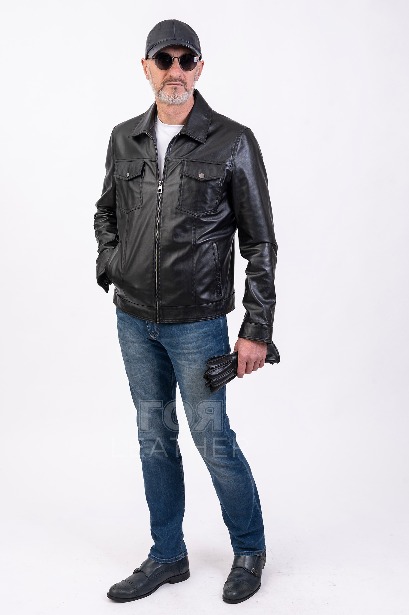 Ново предложение от ГОЯ Leather- Любимото Ви дънково яке е преработено от гладка агнешка напа в класическо черно за елегантен вид. В предната част, характерните за модела два долни странични и два горни прикачени джоба с капак и капси. Налични и два вътрешни джоба. Закопчването е с метален цип.